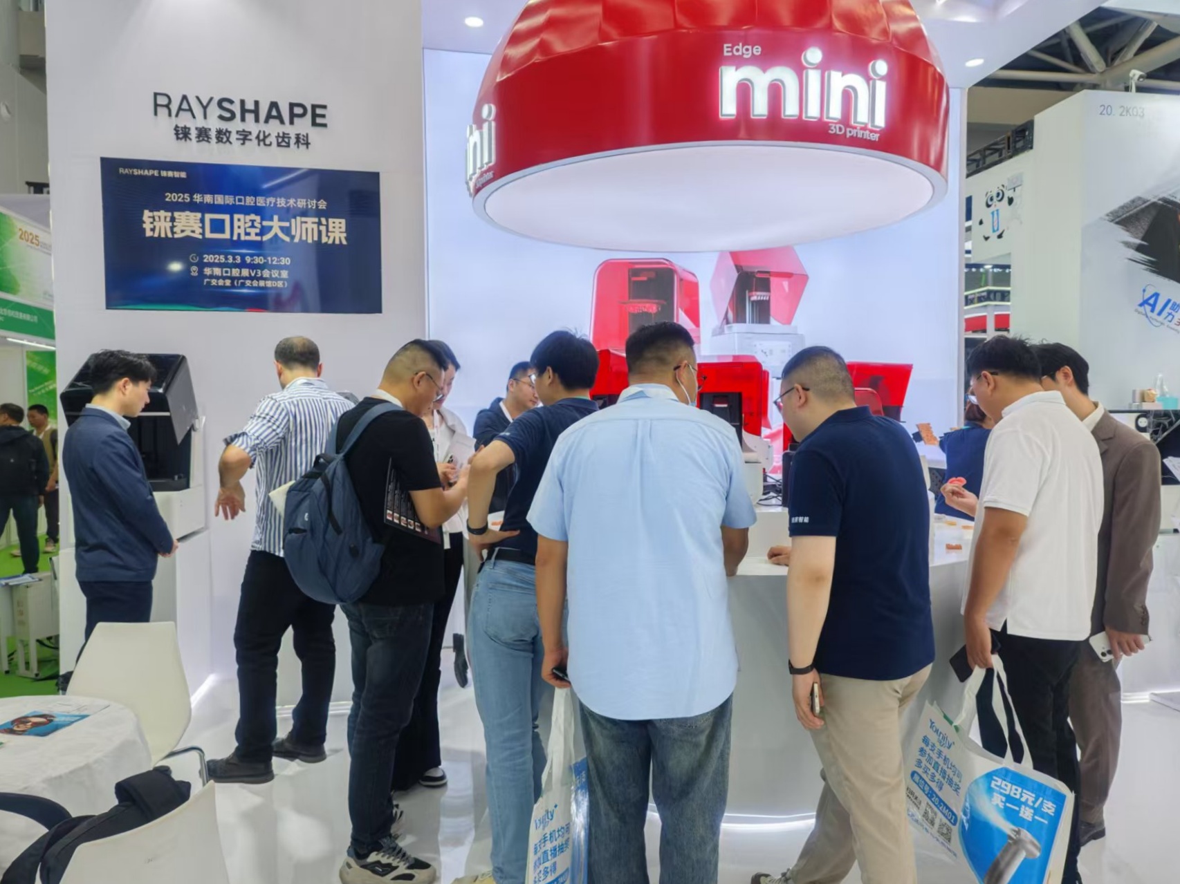 2025年3月3日,第三十届华南国际口腔展在广州盛大开幕,聚焦口腔医疗细分领域数字化发展趋势,呈现一场连续四天的口腔产业盛会。铼赛智能(RAYSHAPE)作为业内领先的数字化齿科解决方案专业提供商,携重磅新品椅旁齿科3D打印机——Edge mini惊艳亮相本次盛会。该设备采用紧凑型轻量化设计和快速打印性能,专为牙科诊所量身定制直观简易的工作流程和高效精确的加工能力。