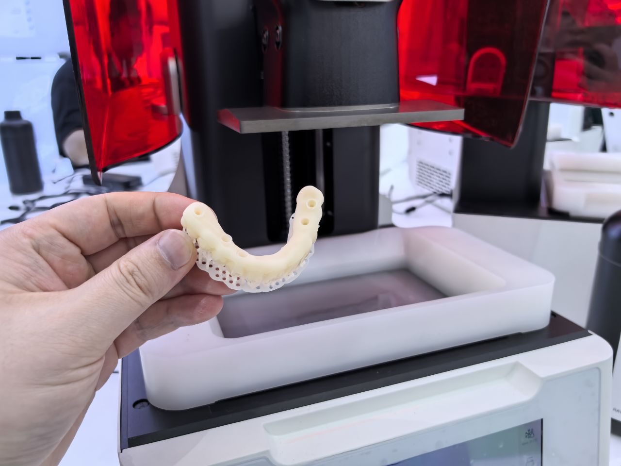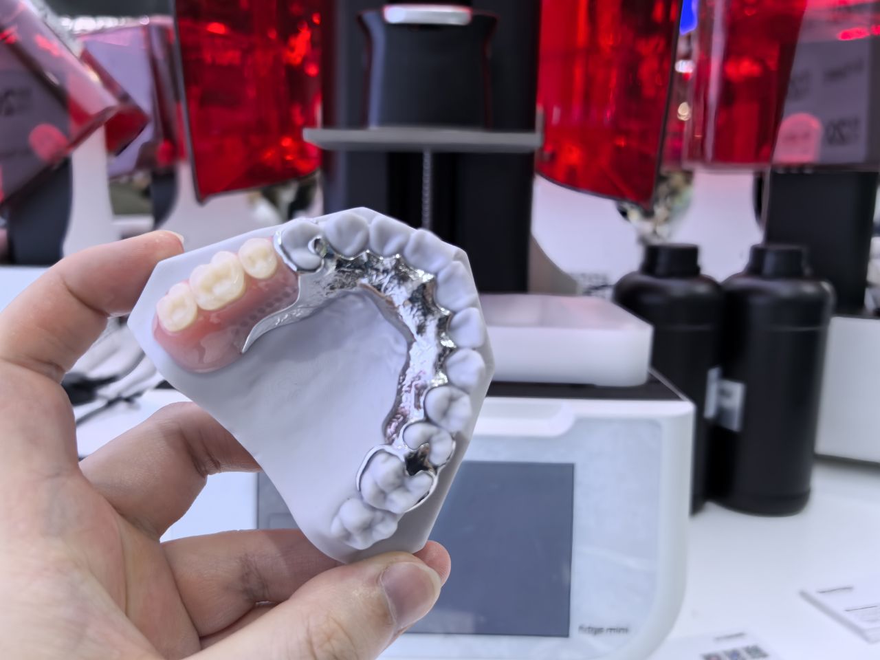本次华南国际口腔展上,铼赛智能的展位同样经过精心设计,展区中央采用红白配色的胶囊造型,既与Edge mini 3D打印机的小巧尺寸相契合,又通过简洁的线条展现出口腔医疗科技产品的美感,为观众营造出类似未来诊所的体验感。无论是想了解新型齿科3D打印技术的牙科从业者,还是关注数字化诊所建设的经营者,铼赛智能展位都能直观展示Edge mini的设备特点,成为本届展会最具吸引力的“网红”打卡地之一。